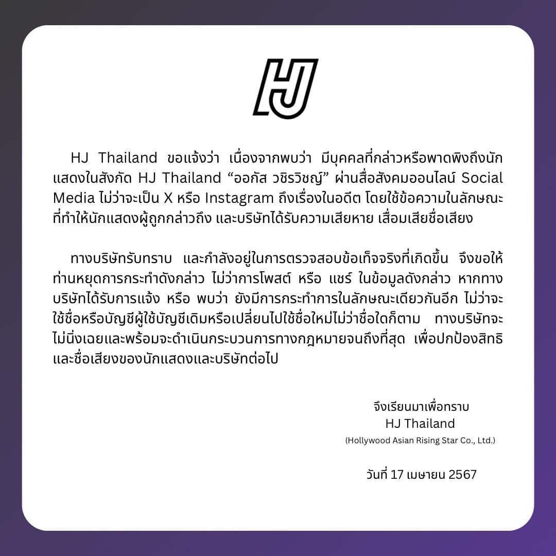 ทำเอาโซเชียลร้อน ชาวเน็ตไม่ได้หลับไม่ได้นอน เพราะมัวแต่สืบอยู่ว่าดาราชายคนนั้นที่ กันสมาย กว่าวถึงเป็นใคร จนสุดท้ายหวยไปออกที่หนุ่ม ออกัส วชิรวิชญ์ จนทัวร์ลงโดนวิพากษ์วิจารณ์ถึงพฤติกรรมชายแท้ พูดไม่ให้เกียรติทั้งผู้หญิง และเพื่อนตัวเอง จนกระทั่ง HJ Thailand ต้นสังกัดของ ออกัส ออกมาแถลงดรามาดังกล่าวว่า นักแสดงในสังกัดถูกพาดพิงถึงเรื่องในอดีต โดยข้อความทำให้นักแสดงผู้ถูกกล่าวถึงและบริษัทได้รับความเสียหาย ทางบริษัทกำลังตรวจสอบข้อเท็จจริง จึงขอให้หยุดโพสต์ และแชร์ ข้อมูลดังกล่าว หากพบว่ายังมีการกระทำในลักษณะดังกล่าว บริษัทจะดำเนินกระบวนการทางกฎหมายจนถึงที่สุด