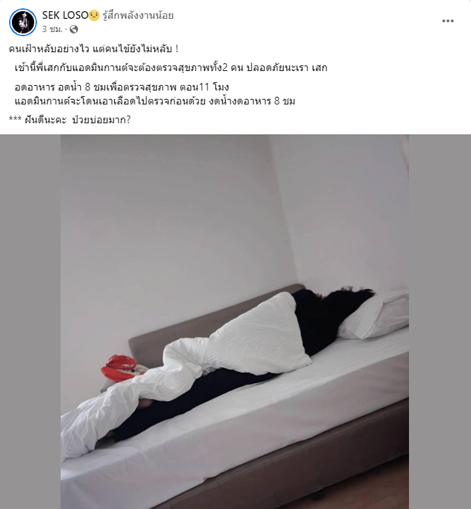ล่าสุดในอินสตราแกรมส่วนตัวของ กานต์ วิภากร สุขพิมาย ภรรยาคนสวยของนักร้องดังรุ่นใหญ่ชาวร็อกของไทยอย่าง เสก โลโซ ได้ออกมาโพสต์รูปที่เธอนั้นได้นอนแอดมิทเข้าโรงพยาบาลกลางดึก ห้อยสายน้ำเกลือ พร้อมทั้งเธอยังมีการระบุข้อความไว้อีกด้วยว่า “แอดมิดกลางดึก​ ร่างกาย​ย้ำแย่จริงๆ​ อายุ​เยอะ​แล้ว​เราต้องทำงานให้น้อยลงจริงๆเหรอเนี่ย​แล้ว​ใคร​จะ​ทำละ ทั้งวูบบ่อยๆทั้งอ้วกทั้งเพลียทั้งเครียดสะสม​ ไม่รู้จะอยู่ทันได้เห็นความสำเร็จ​ของ​ลูก​ทั้ง​3ไหม​ อันนี้แหละที่เรากังวลมาก เค้า3คนคือชีวิต​ของ​กานต์ แม่รักเสือกวางลอนดอน​และ​ห่วงกังวลใจ​ไปหมด​ ลูกรัก​ของ​แม่!!” ทั้งนี้ทางด้าน เสก ก็ค่อยเฝ้าดูแลไม่ห่างด้วย ซึ่งเจ้าตัวนั้นก็ได้มีการโพสต์รูปพร้อมข้อความที่ภรรยานอนแอดมิทที่โรงพยาบาลนั่นเอง พร้อมระบุข้อความไว้ว่า “คนเฝ้าหลับอย่างไว แต่คนไข้ยังไม่หลับ !เช้านี้พี่เสกกับแอดมินกานต์จะต้องตรวจสุขภาพทั้ง2 คน ปลอดภัยนะเรา เสก อดอาหาร อดน้ำ 8 ชมเพื่อตรวจสุขภาพ ตอน11 โมง แอดมิทกานต์จะโดนเอาเลือดไปตรวจก่อนด้วย งดน้ำงดอาหาร 8 ชม *** ฝันดีนะคะ ป่วยบ่อยมาก?”