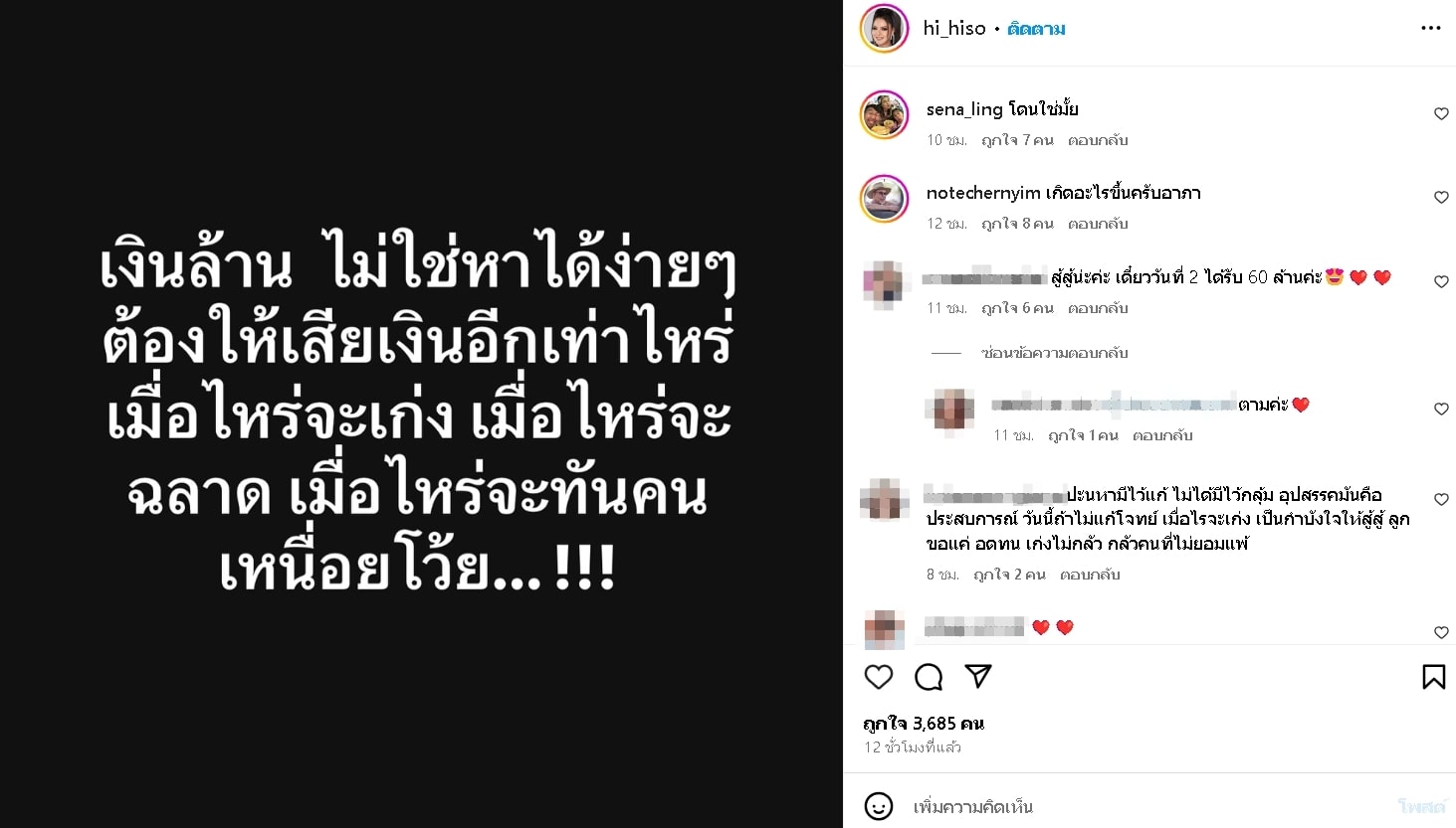 ฮาย อาภาพร โพสต์ลั่นถึงเงินล้าน